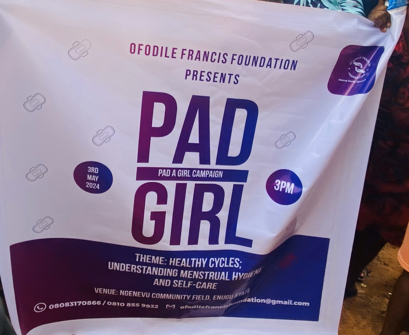 The Ofodile Francis Foundation hosted the Pad A Girl Campaign at Ngenevu Community Field to promote menstrual hygiene, healthy cycles, and self-care education for the social empowerment of the girl-child.